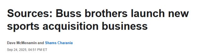 北京时间9月25日,据名记Shams和McMenamin联合报道,消息人士向ESPN透露,巴斯家族的两位兄弟正将业务版图拓展至洛杉矶湖人队之外的职业体育领域:湖人队候补理事兼研发副总裁乔伊-巴斯,以及湖人队助理总经理杰西-巴斯,将联合推出名为“巴斯体育资本”的新公司。这家全新投资机构旨在全球体育领域寻找收购机会与合作项目。