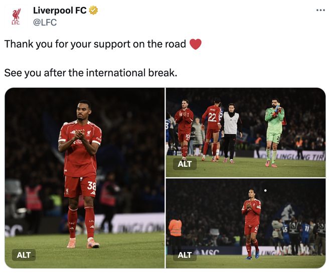 利物浦官方发文:谢谢球迷们来客场支持,国际比赛日后再见